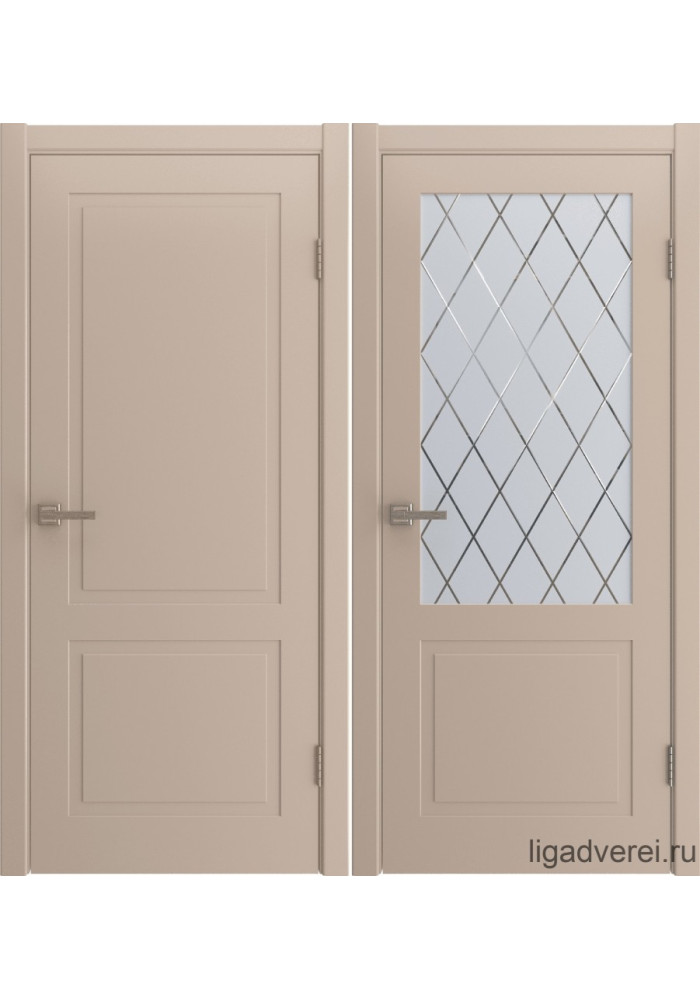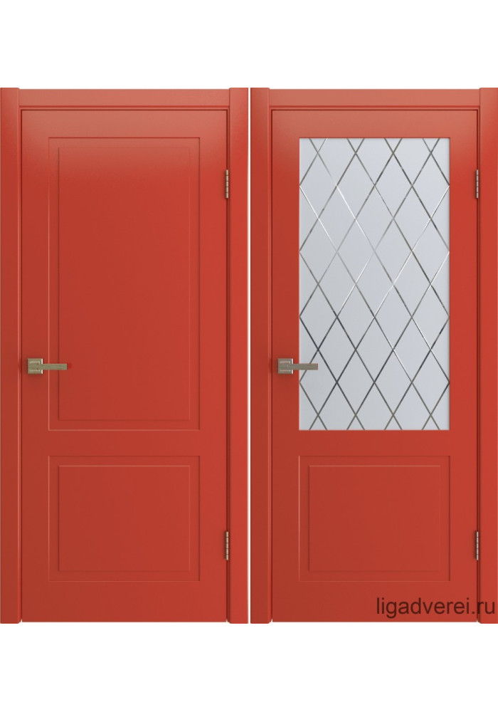 Материал: Каркас двери изготовлен из срощенного массива ,внутри наполнение влагостойкий ХДФ, поверх которого нанесена итальянская эмаль. Вы можете заказать двери стандартных или нестандартных размеров* этой и других моделей окращенные в любой цвет по RAL (кроме К7-металлические цвета).