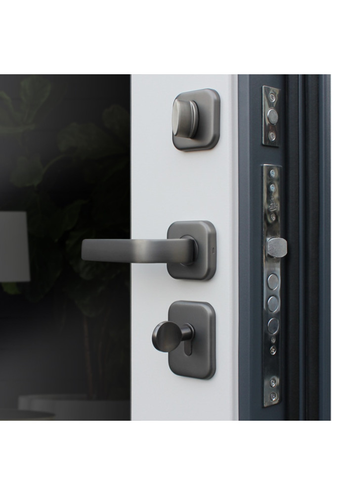 - Фурнитура: Ручка, ночная задвижка, глазок на квадратной розетке. Цвет "графит". Смотрите также: ДВЕРНЫЕ ГАДЖЕТЫ