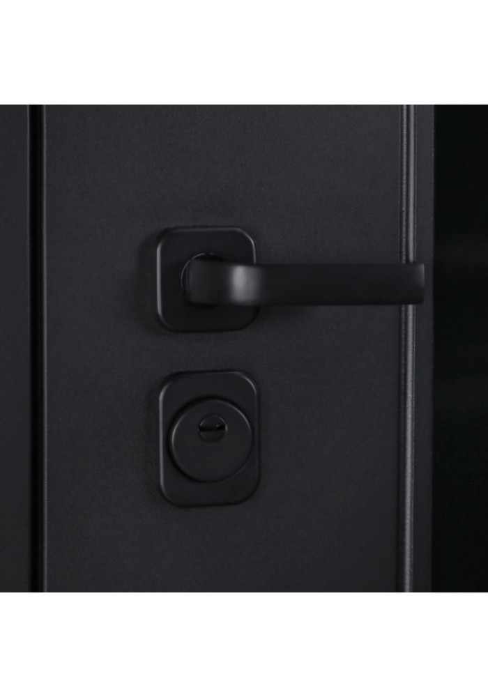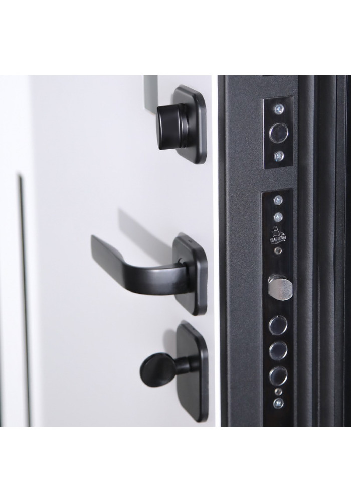- Фурнитура: Ручка, ночная задвижка, глазок на квадратной розетке (цвет "черный"). Смотрите также: ДВЕРНЫЕ ГАДЖЕТЫ